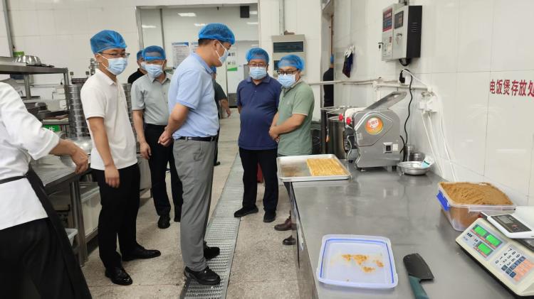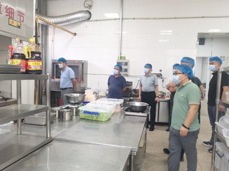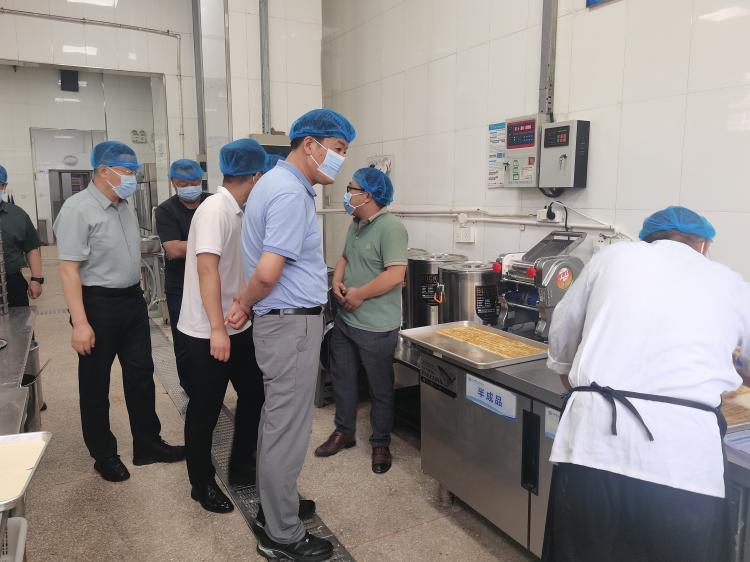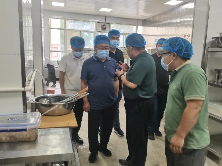 2025年9月12日上午,学院党委书记岳高社、院长李灯熬、分管院长王福成深入食堂后厨,检查指导新学期食堂准备工作情况。后勤和餐饮服务中心负责人及工作人员陪同检查。